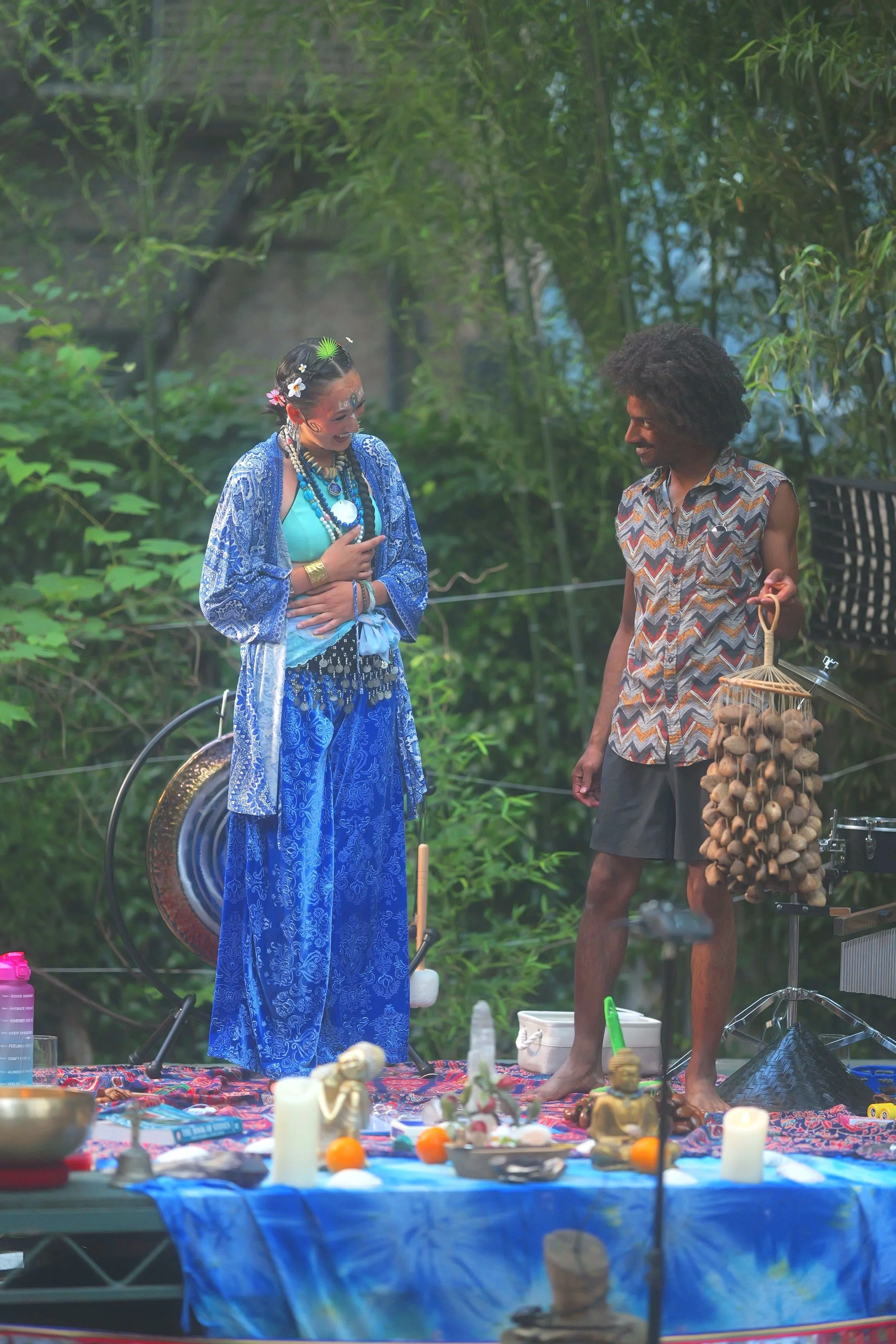 In devotion to what we were creating, we made the conscious decision to forgo the expected routes such as traditional schooling, day jobs, and the safety of the prescribed path, choosing instead to follow the deeper calling unfolding before us. This was not an act of departure, but one of alignment. Even then, we sensed this work would expand far beyond our original imagining. Guided by inner knowing, we entered a spiritual journey rooted in discipline, surrender, and creative service. During this time, Buddha Mei felt called to deepen her relationship with sound not only as an art form, but as a modality for healing, later becoming a Certified Sound Practitioner through the International Sound Therapy Association. What began as music continued to reveal itself as sacred ceremonial service.