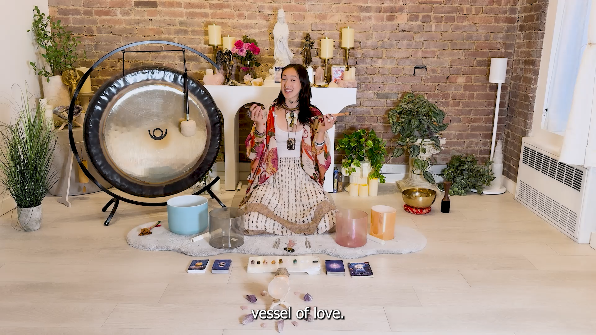 • Live sound immersion using singing bowls, gong, shamanic drumming, crystal harp, voice, chimes, tuning forks, and ceremonial instruments