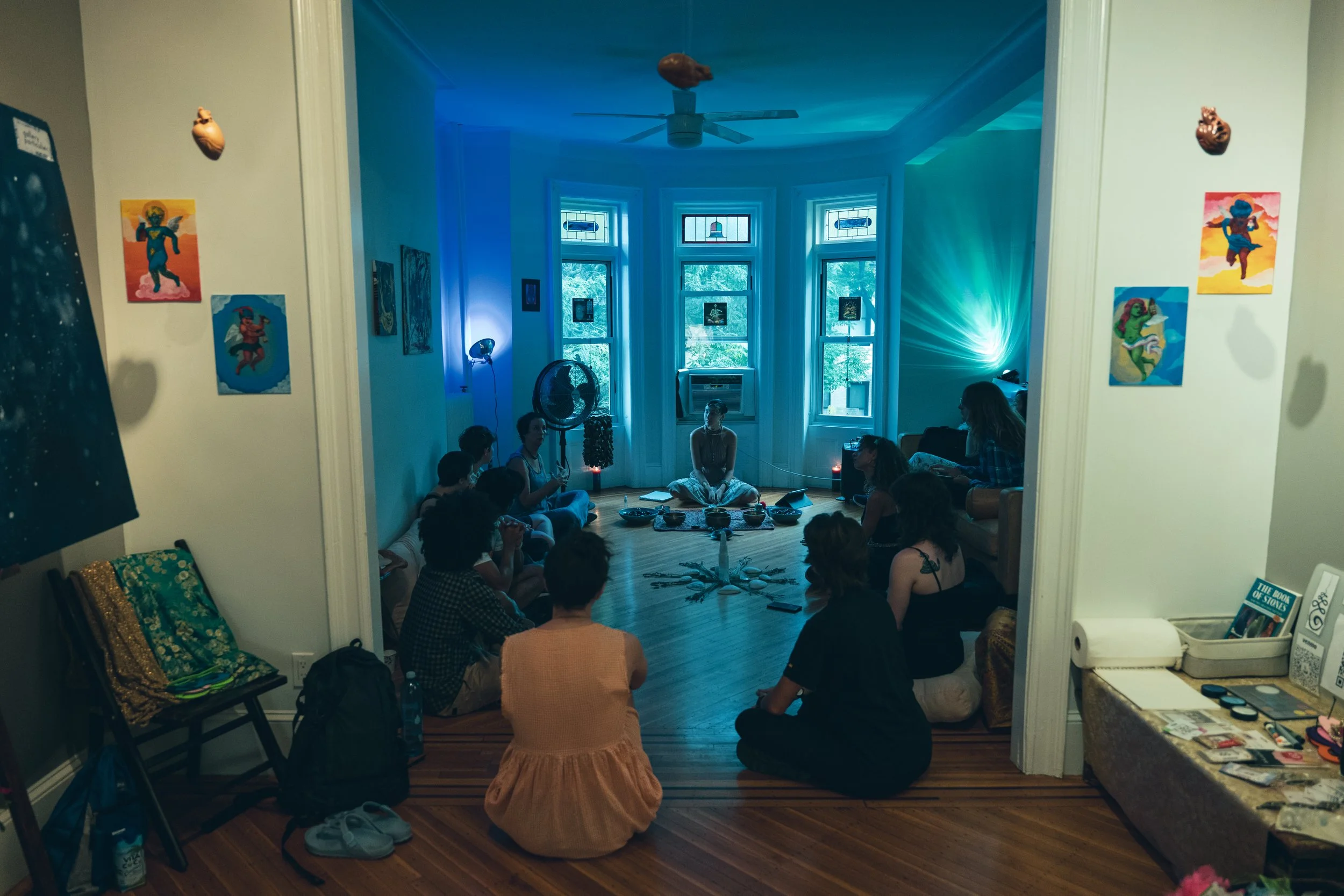 • Live sound bath with crystal bowls, voice, percussion, and ambient instruments